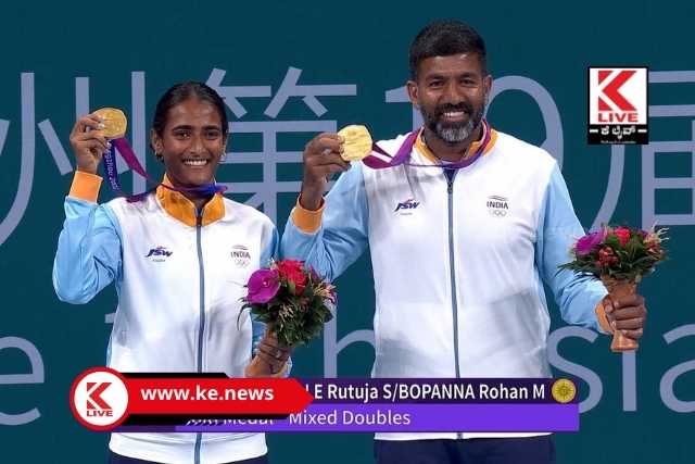 Asian Games ಚೈನಾದ ಹ್ಯಾಂಗ್ ಝೌನಲ್ಲಿ ನಡೆಯುತ್ತಿರುವ ಏಷ್ಯನ್ ಕ್ರೀಡಾಕೂಟದಲ್ಲಿ ರೋಹನ್ ಬೋಪಣ್ಣ ಮತ್ತು ರುತುಜಾ ಭೋಸಲೆ ಅವರು ಮಿಶ್ರ ಡಬಲ್ಸ್ ಟೆನಿಸ್ ಫೈನಲ್ನಲ್ಲಿ ಚಿನ್ನ ಗೆದ್ದಿದ್ದಾರೆ.